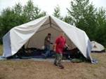 Beim Einrichten im Zelt |